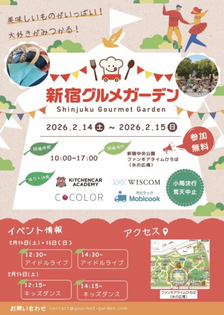 新宿中央公園のファンモアタイムひろば(水の広場)に、さまざまなジャンルのキッチンカーが集結するグルメイベントが開催されます。こだわりのフードを味わいながら、アイドルライブやキッズダンスなどのパフォーマンスも楽しめる、食とエンタメが融合した週末イベント。家族や友人と一緒に、青空の下でにぎわいあふれるひとときを過ごしてみてはいかがでしょうか。