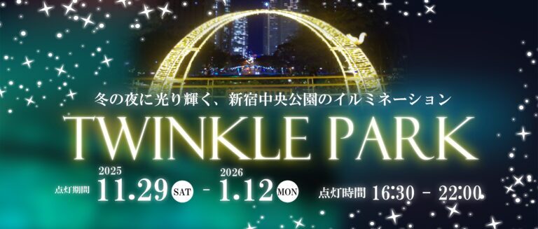 公園の木々や滝をやさしい光で彩る、冬限定のイルミネーションイベント。眺望の森やファンモアタイムひろばを中心に、幻想的な夜の景色が広がり、都会にいながら非日常のひとときを楽しめる。滝のイルミネーションは色を変えられる演出もあり、光と自然が織りなす表情豊かな空間が魅力。新宿イルミネーションデジタルスタンプラリーの対象スポットとしても参加でき、散策とあわせて楽しめる内容となっている。